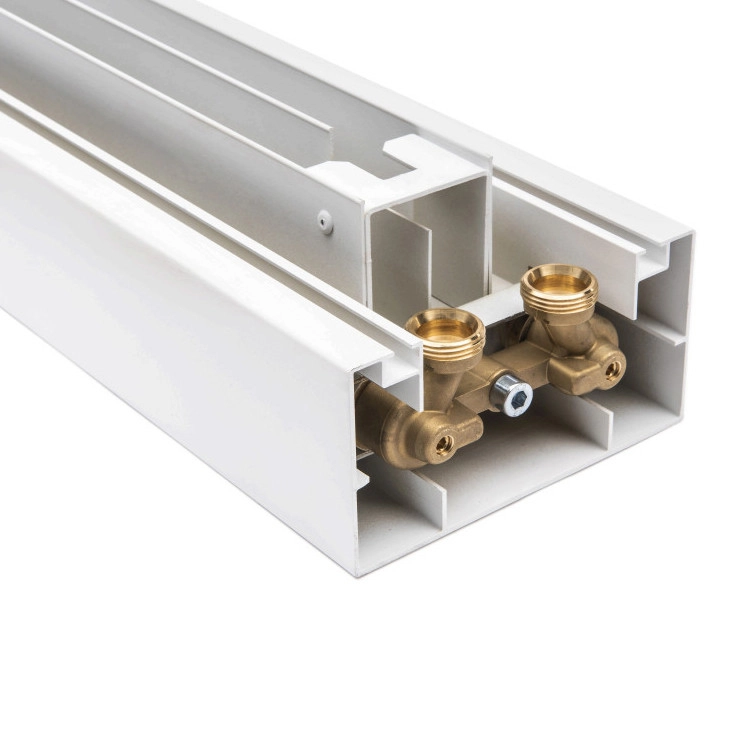 Przyłącza: grzejniki dekoracyjne BEAMS MONO są dostarczane ze specjalnym blokiem przyłączeniowym ¾”GW rozstawie 50 mm dla bezpośredniego przyłączenia do instalacji, kierunek zasilania i powrotu dla grzejnika dowolne – zależą od wykonania instalacji c. o.