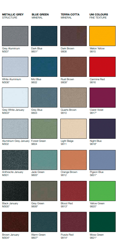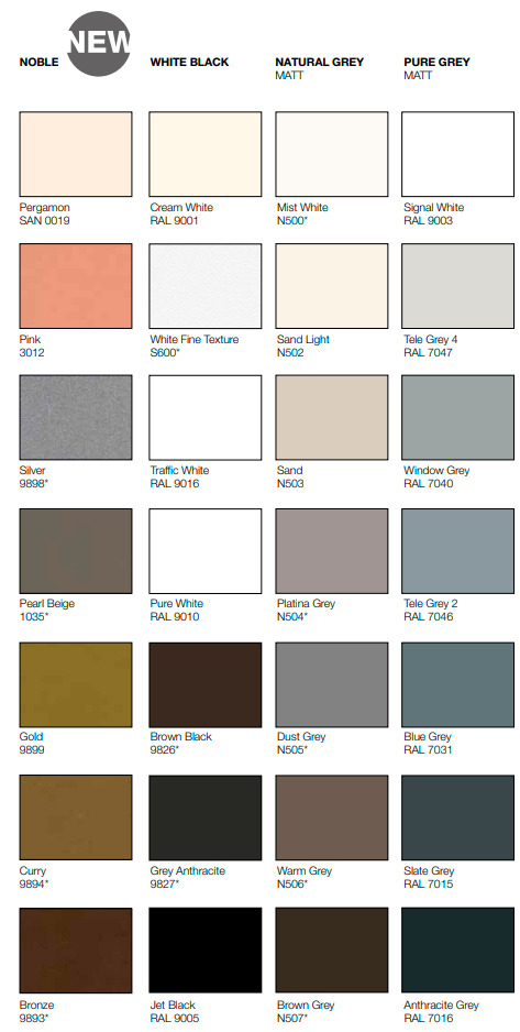 • profile aluminiowe zaciskane bez użycia obcego materiału przy zastosowaniu opatentowanej technologii; podkład kataforetyczny, farba proszkowa epoksydowo-poliestrowa
