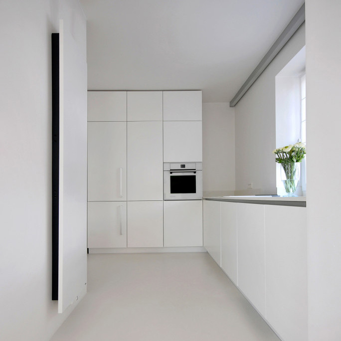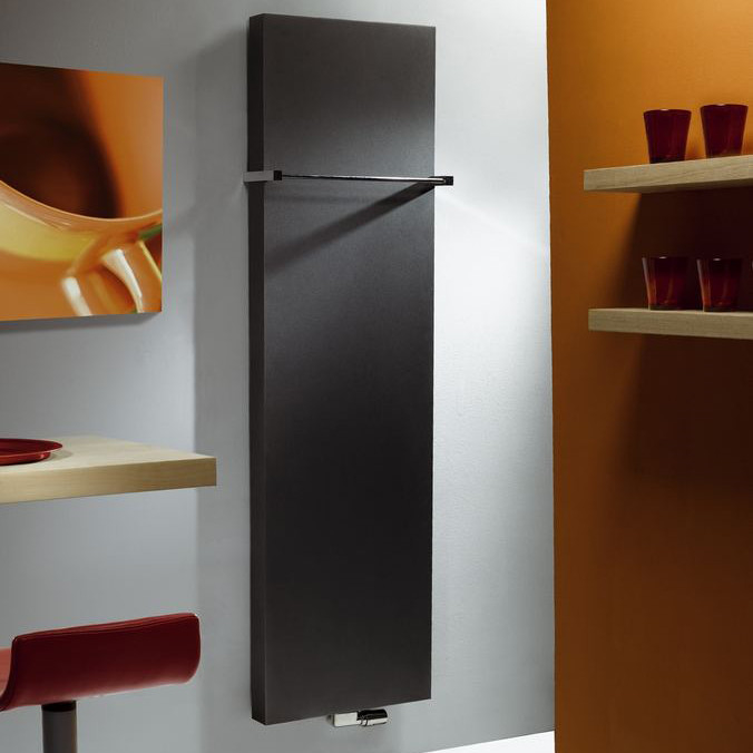NIVA pionowa to ulubiony grzejnik architektów wnętrz. Posiada niezwykłą zdolność do wtapiania się w tło, na którym jest umieszczany. Jako idealny prostopadłościan jest jednym z najbardziej minimalistycznych projektów grzejników, jakie zostały stworzone. Prosta bryła grzejnika, o idealnie płaskiej płycie przedniej jest zawieszana na szarych antracytowych konsolach będących osłonami bocznymi biegnącymi wzdłuż całej wysokości grzejnika.