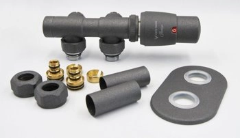 Zestaw „Twins” do grzejników z połączeniem dolnym i króćcami o rozstawie 50 mm.