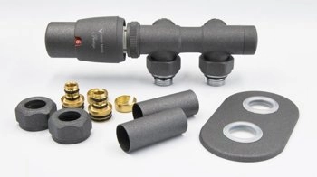 Zestaw „Twins” do grzejników z połączeniem dolnym i króćcami o rozstawie 50 mm.