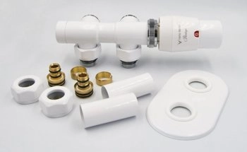 Zestaw „Twins” do grzejników z połączeniem dolnym i króćcami o rozstawie 50 mm.