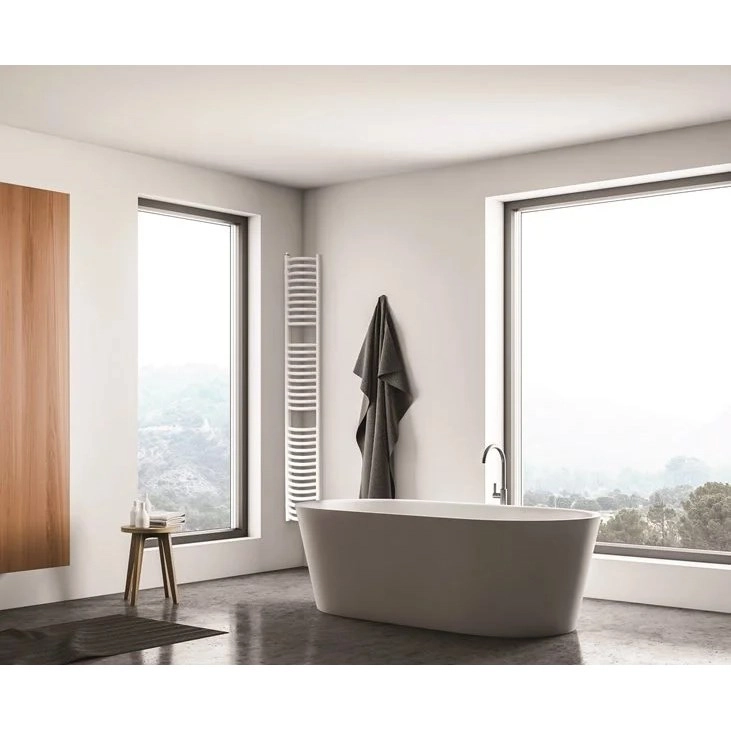 Jeśli wybieramy grzejnik do niewielkiej łazienki, to niewątpliwie ELIPSO świetnie wpasuje się w jej przestrzeń. Sprawdzi się również w narożnikach, ponieważ posiada wyjątkowo smukły i wąski kształt: jego szerokość to zaledwie 250 mm. Specjalne uchwyty ułatwiają montaż na wybranym fragmencie ściany lub narożnika. Rurki poziome o okrągłym przekroju zyskały oryginalny kształt dzięki lekkiemu zagięciu. Grzejnik ELIPSO to nie tylko funkcjonalność, ale także oryginalny wygląd.