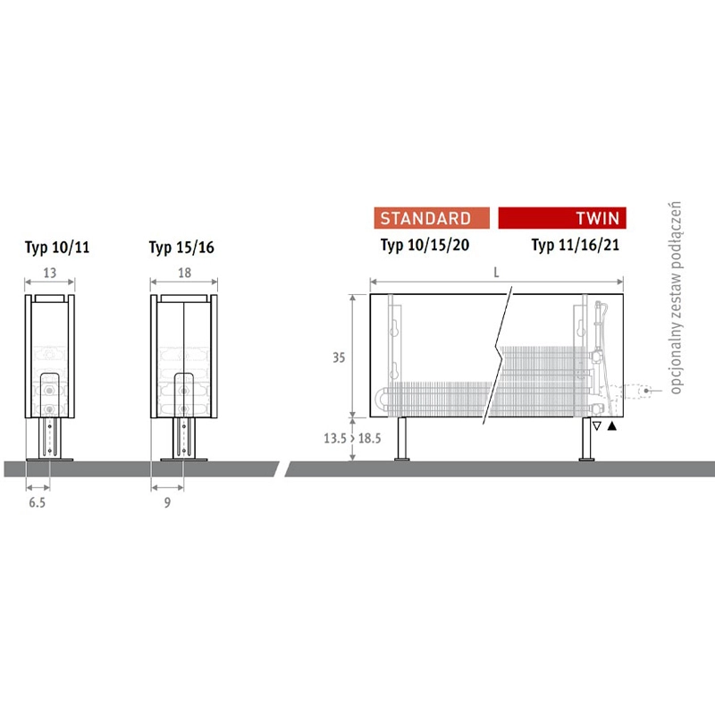 - obudowa z lewym lub prawym podłączeniem u dołu grzejnika