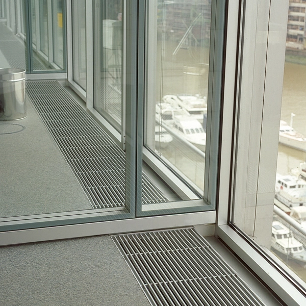 Idealne rozwiązanie do pomieszczeń z wysokimi oknami, oranżerii i biur. Pod kratką ukryty jest szybko reagujący system Low-H2O. Jedynym widocznym elementem grzejnika w pomieszczeniu jest estetyczna kratka przykrywająca, którą można idealnie dopasować do podłogi lub wystroju wnętrza.