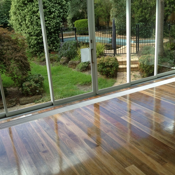 Idealne rozwiązanie do pomieszczeń z wysokimi oknami, oranżerii i biur. Pod kratką ukryty jest szybko reagujący system Low-H2O. Jedynym widocznym elementem grzejnika w pomieszczeniu jest estetyczna kratka przykrywająca, którą można idealnie dopasować do podłogi lub wystroju wnętrza.