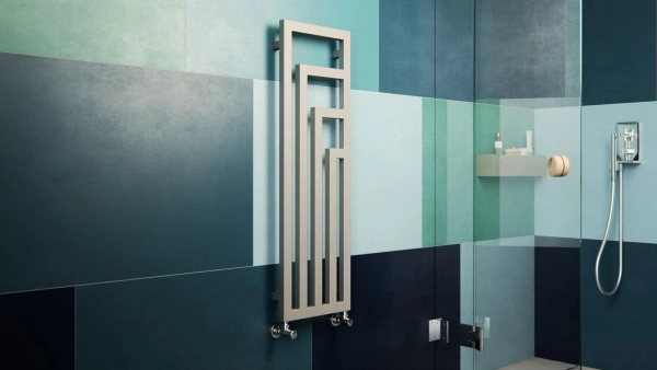 Geometryczny układ rur grzejnika Angus wprowadza do wnętrza ład i nadaje mu nowoczesnego charakteru. Model został opracowany w wersji pionowej (V).