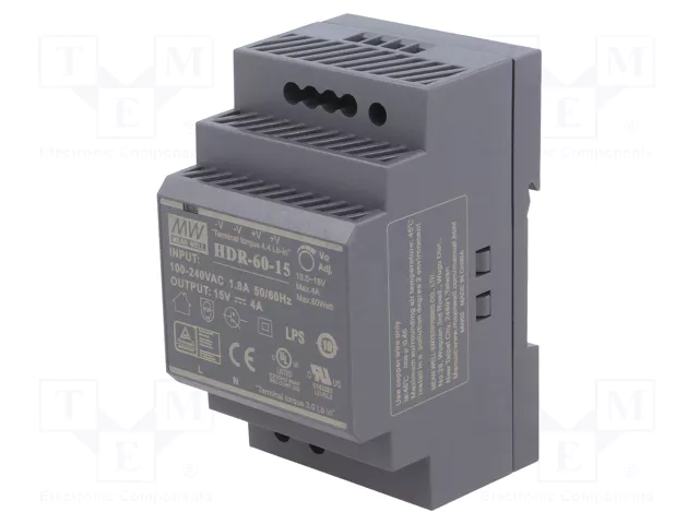 Zasilacz impulsowy 60W MEAN WELL HDR-60-15