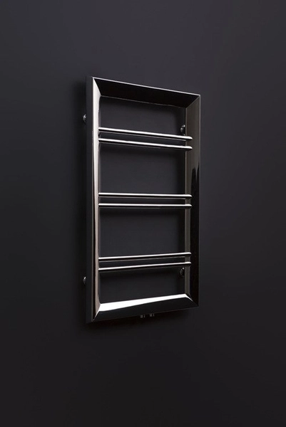 Wewnątrz stalowej konstrukcji i szerokiego obramowania znajdują się delikatne, poziome rurki grzewcze, a duże otwory ułatwiają wieszania ręczników