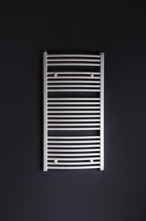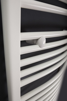 Lekką konstrukcję grzejnika drabinkowego Dalis D podkreślają delikatnie wygięte rurki.