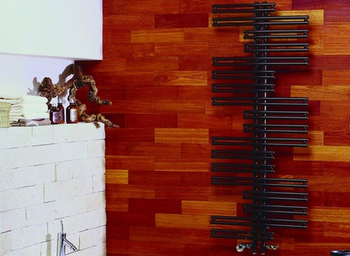 - Kea ma kolektory pionowe umieszczone blisko siebie. W tym modelu stanowia one centralny element grzejnika. Poziome rurki, jak ramiona oryginalnego wieszaka, rozposcieraja się na dwie strony.