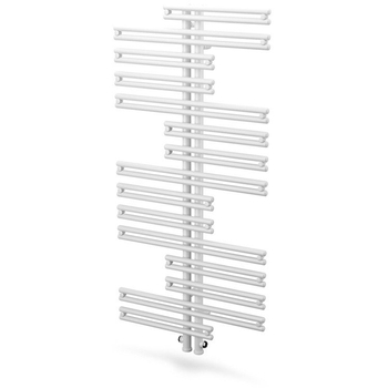 Grzejnik łazienkowy Kea to kolejny niezwykle ozdobny grzejnik łazienkowy Purmo. Charakterystyczną cechą tego modelu jest niesymetryczne rozmieszczenie poziomych kolektorów, które jak ramiona oryginalnego wieszaka rozchodzą się raz na lewą, raz na prawą stronę. Oś grzejnika stanowią rozmieszczone blisko siebie dwa cienkie pionowe kolektory. Grzejnik zwraca więc uwagę swoim oryginalnym kształtem, ale ponadto jest oczywiście funkcjonalny – na kolektorach o taki rozmieszczeniu łatwo jest powiesić kilka ręczników. Model wyróżnia się możliwością wyposażenia w szeroki wybór przydatnych akcesoriów Purmo, do których należą półeczki na kosmetyki i łazienkowe drobiazgi oraz uchwyty na ręczniki. Dzięki temu będzie stanowić zarówno piękne, jak i funkcjonalne wyposażenie łazienki.